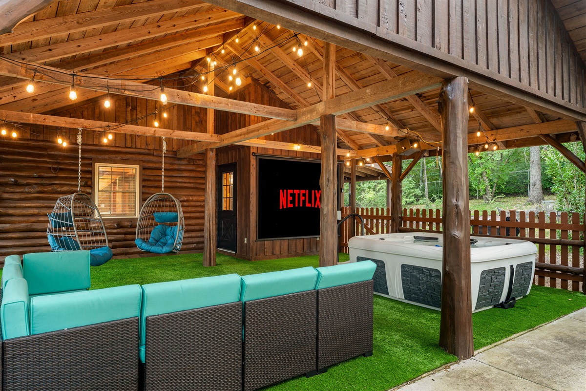 Step outside to enjoy the beautiful surroundings with a dining table for six and grill, perfect for outdoor meals. Unwind in your private hot tub, or roast marshmallows at the fire pit. This home features a private hot tub for your enjoyment. Our dedicated staff may need to access the hot tub for cleaning and maintenance purposes during your stay. Please feel free to reach out if you have any questions or concerns.