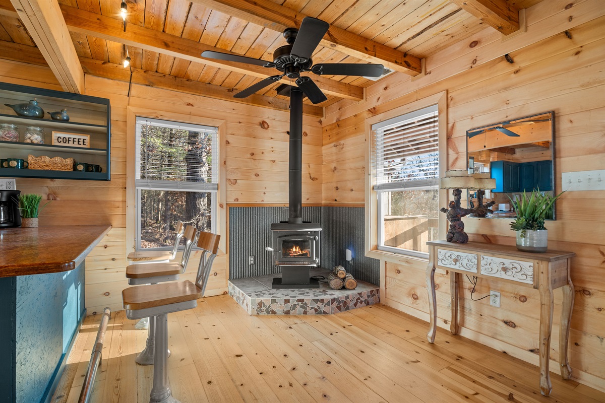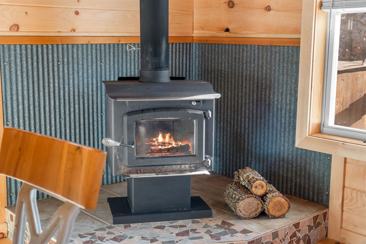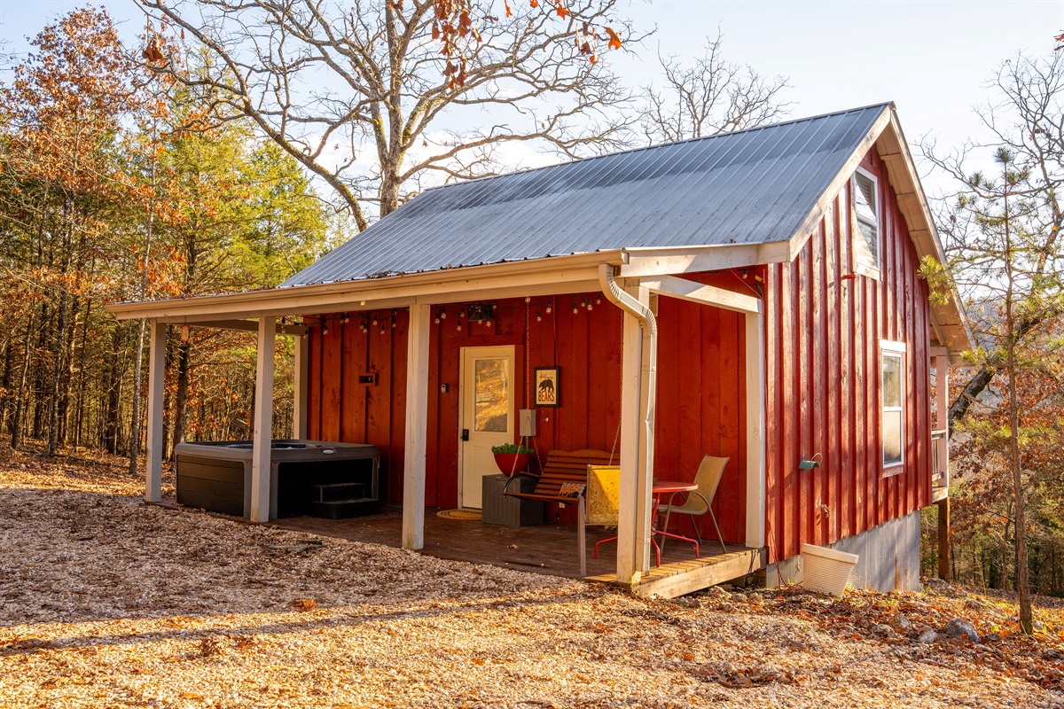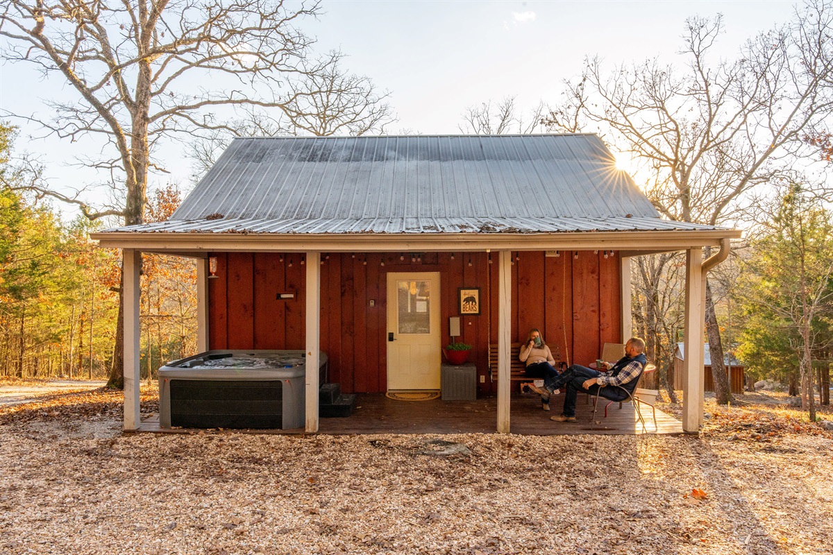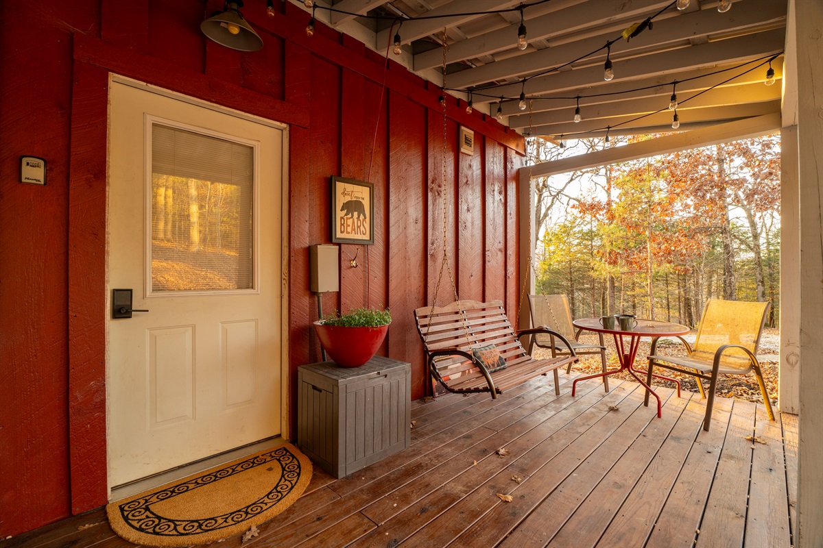 • Back porch with propane fire pit, where you can relax and take in the Ozark scenery