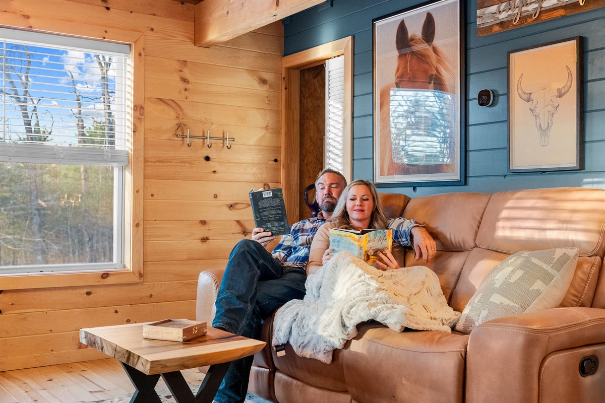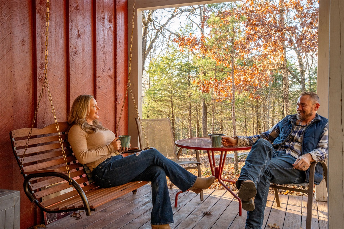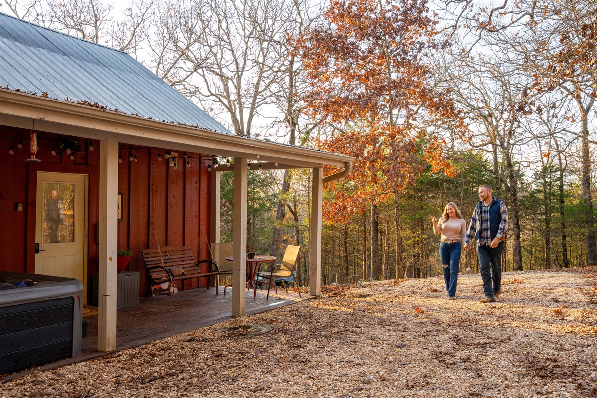 Tucked away in the peaceful woods of the Ozarks, this charming red cabin for two is the perfect romantic retreat. Designed exclusively for couples seeking quiet time together, The Blushing Stallion offers privacy, warmth, and all the little touches that make a getaway unforgettable.
