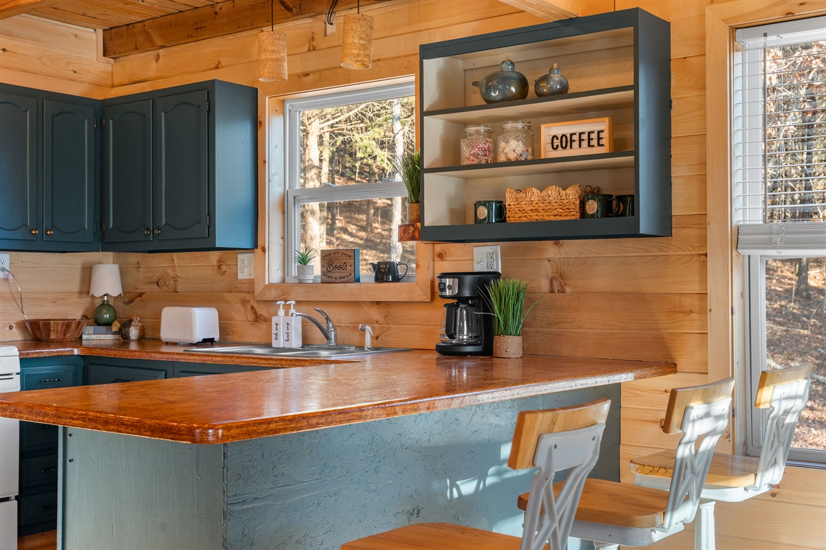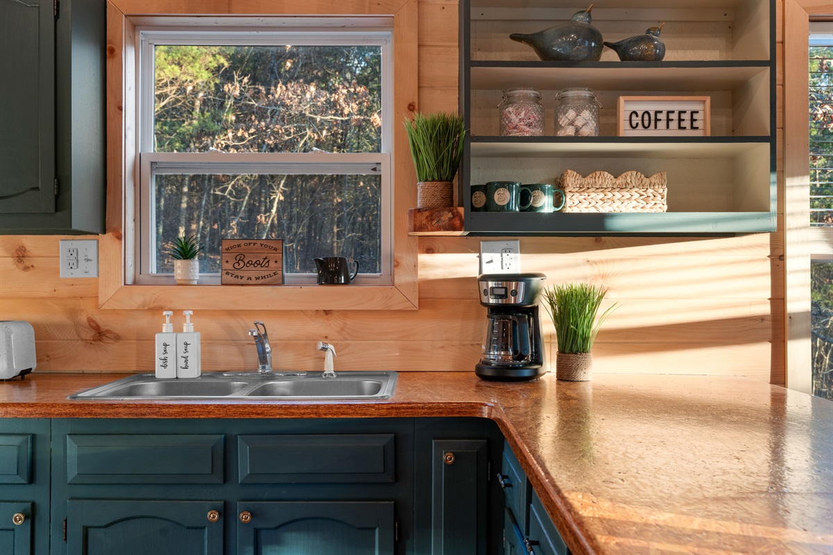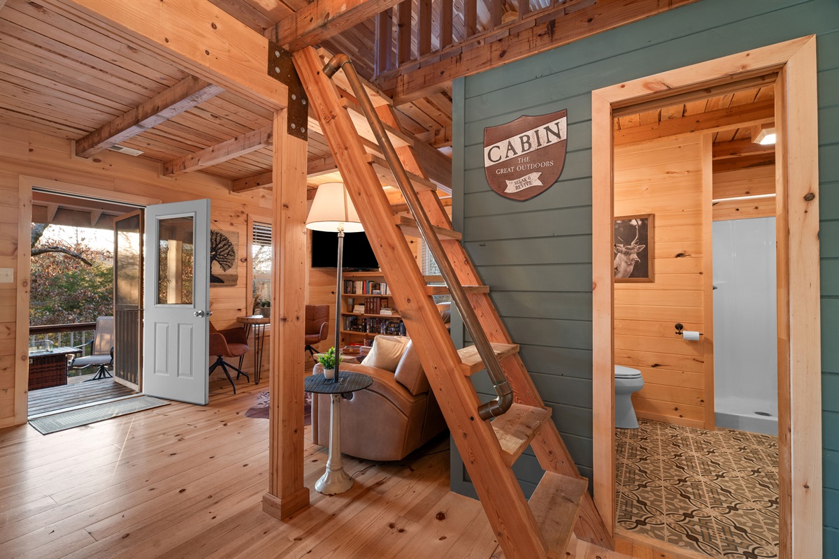 Your stay begins as you arrive at a gated entrance. A personalized access code will be provided prior to check-in. Wind your way up the drive to the cabin, where nature surrounds you and the world feels miles away.