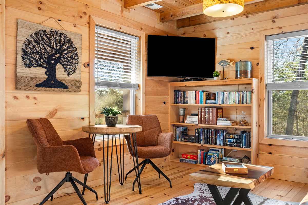 • Two cozy lounge chairs perfect for reading or late-night conversations