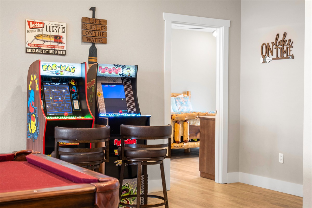 🎮 Game area featuring arcade games and a pool table